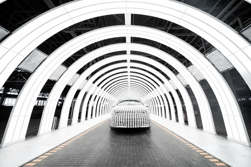 恒大汽车装配车间,行业首创双色弧形灯廊