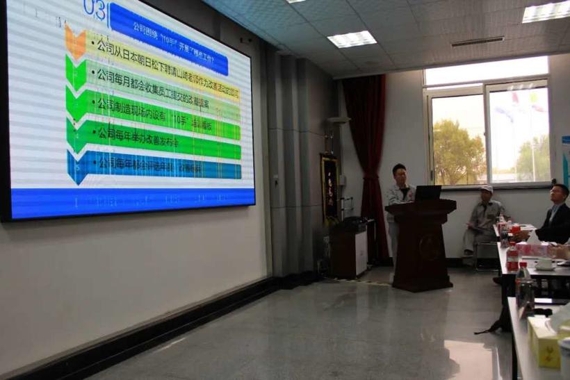 营口阿部配线有限公司制造部部长、公司改善管理委员会主任 刘贵春主持改善发布会