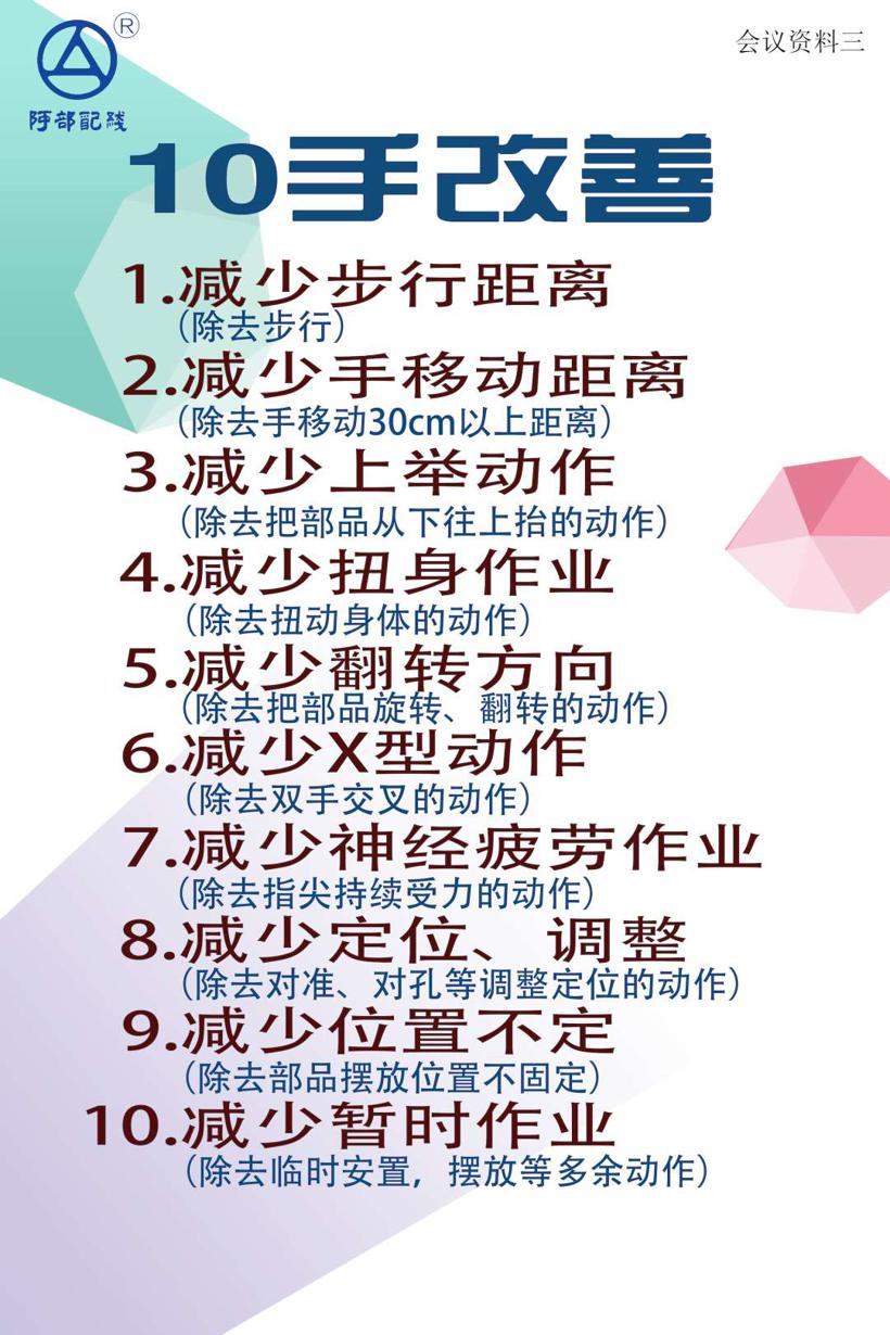 在改善成果正式发布前,营口阿部配线有限公司技术开发部部长李佳斌为大家做了《精益管理「10手改善」要点》讲座,介绍了营口阿部配线改善的起源、“10手”改善要点以及“10勘”、“10归”改善的基本内容。