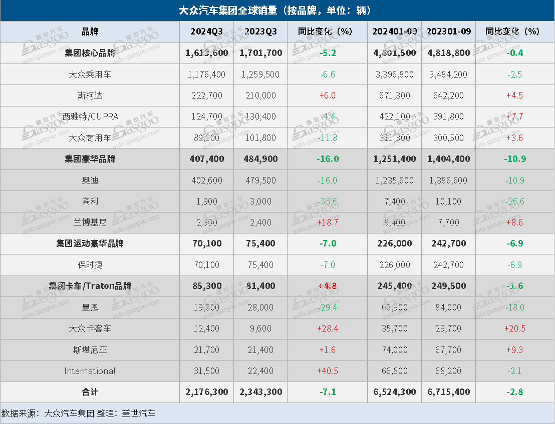 车旅世界讯 10月11日,大众汽车集团公布,其第三季度全球销量同比下降7.1%至217.6万辆,其中,在全球最大的汽车市场中国的销量同比下降15%至711,500辆。这凸显出欧洲汽车业正面临严峻挑战,包括中国市场需求疲软和欧洲本土生产成本高企。