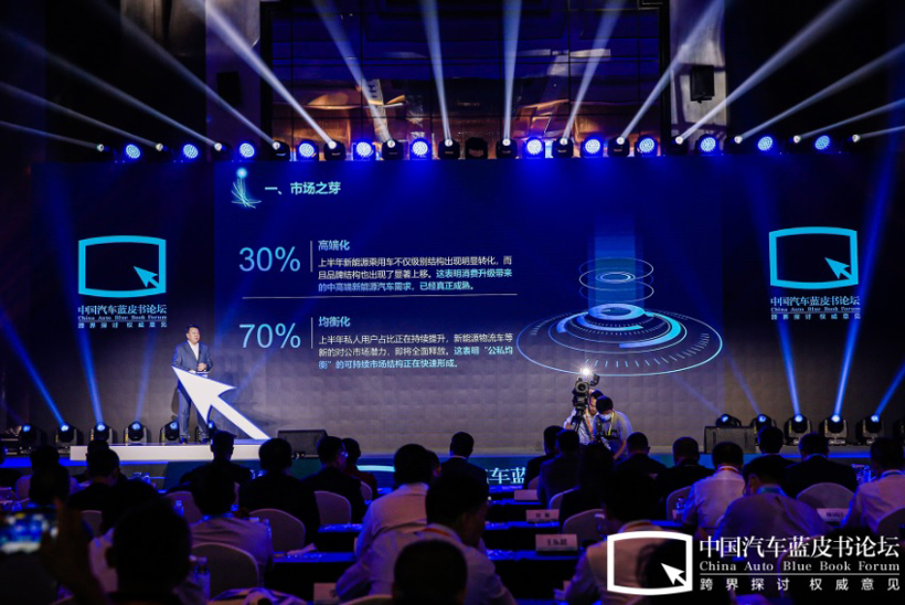 第二是均衡化。近年来,新能源汽车市场大家知道,以公为主的格局占了绝对的比重。搞新能源汽车基本国内两大市场,工业公和私,对公和对私。那么今年上半年又出现了明显的变化,就是快速的转向公私均衡。一方面上半年私人用户占比正在迅速的提升,已经超过70%。另一方面,新能源的物流车,换电的出租车等新的对公市场的潜力,也积极全面的释放。这表明公司均衡的可持续的市场结构,正在快速的形成。那么为了呵护市场之芽的茁壮成长,我们要继续强化技术创新,模式创新,更好的来满足用户的多元化的需求。