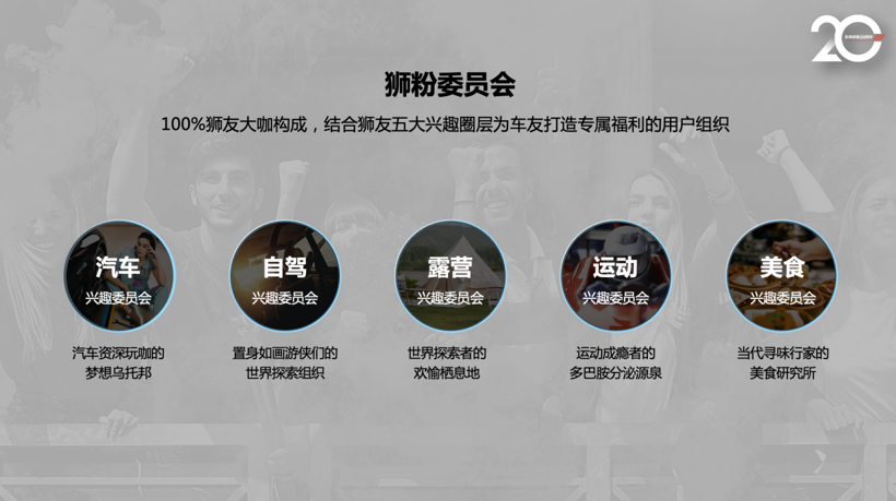 与此同时,东风标致狮粉委员会,基于五大兴趣圈层,招募更多狮粉大咖,为车主发声,导入优质、专属的资源,与狮粉一起共创、共治、共享新法式高品质生活。